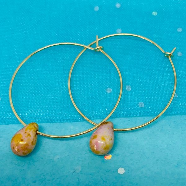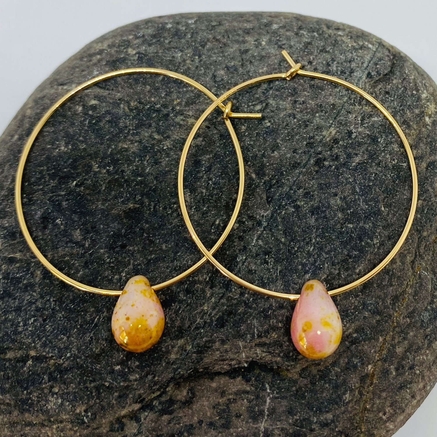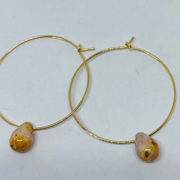 3cm gold filled hoops with a blush pink mottled teardrop bead