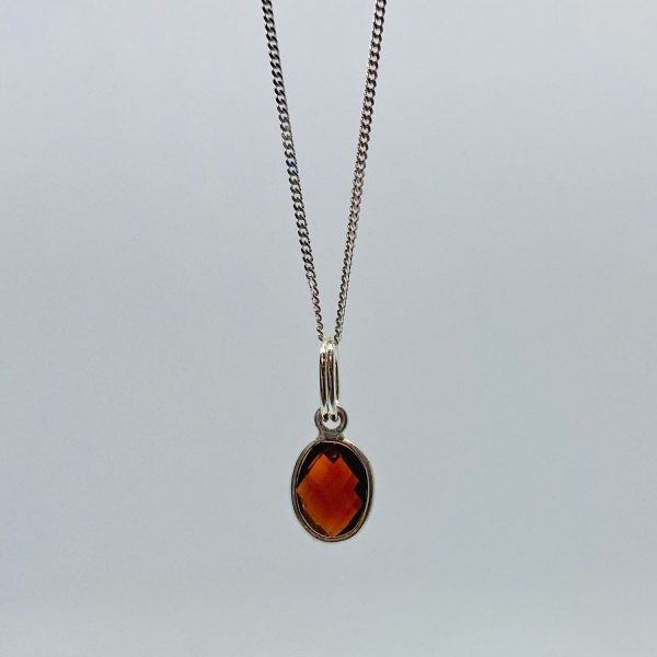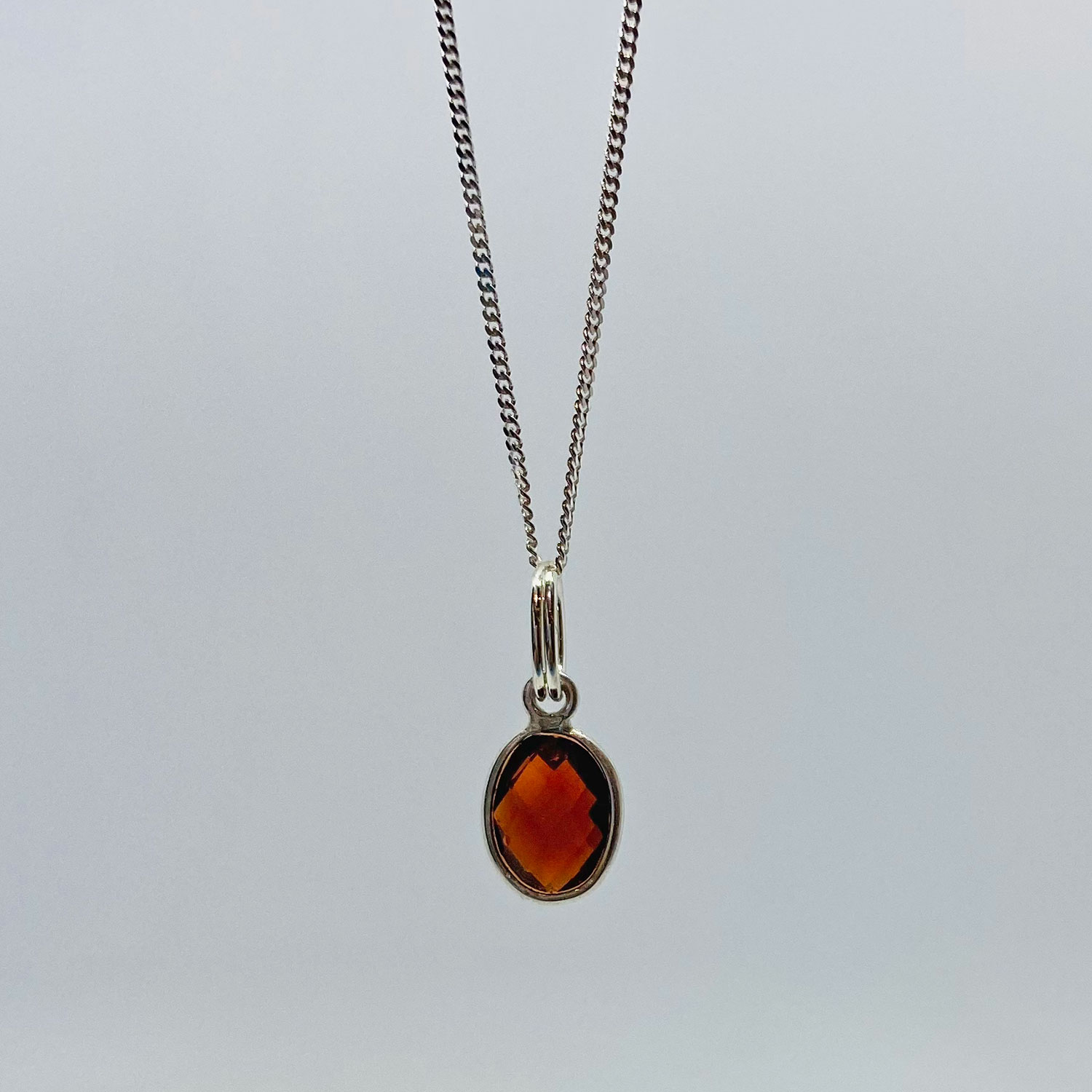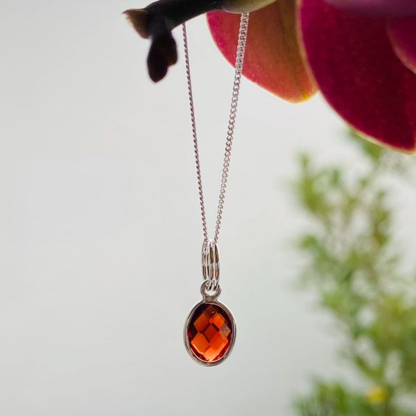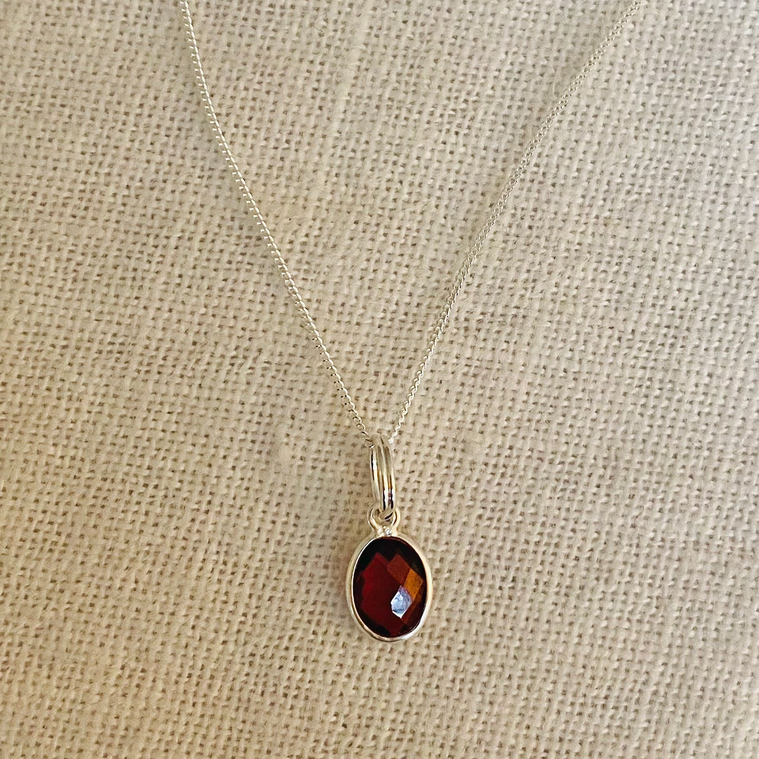 Oval Garnet gemstone n an 18 inch fine silver chain