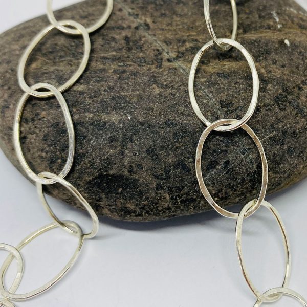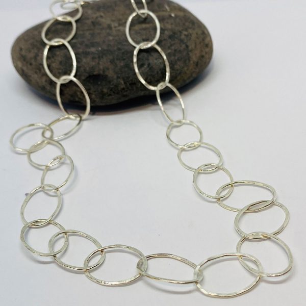 A silver Oval hammered link 24 inch necklace