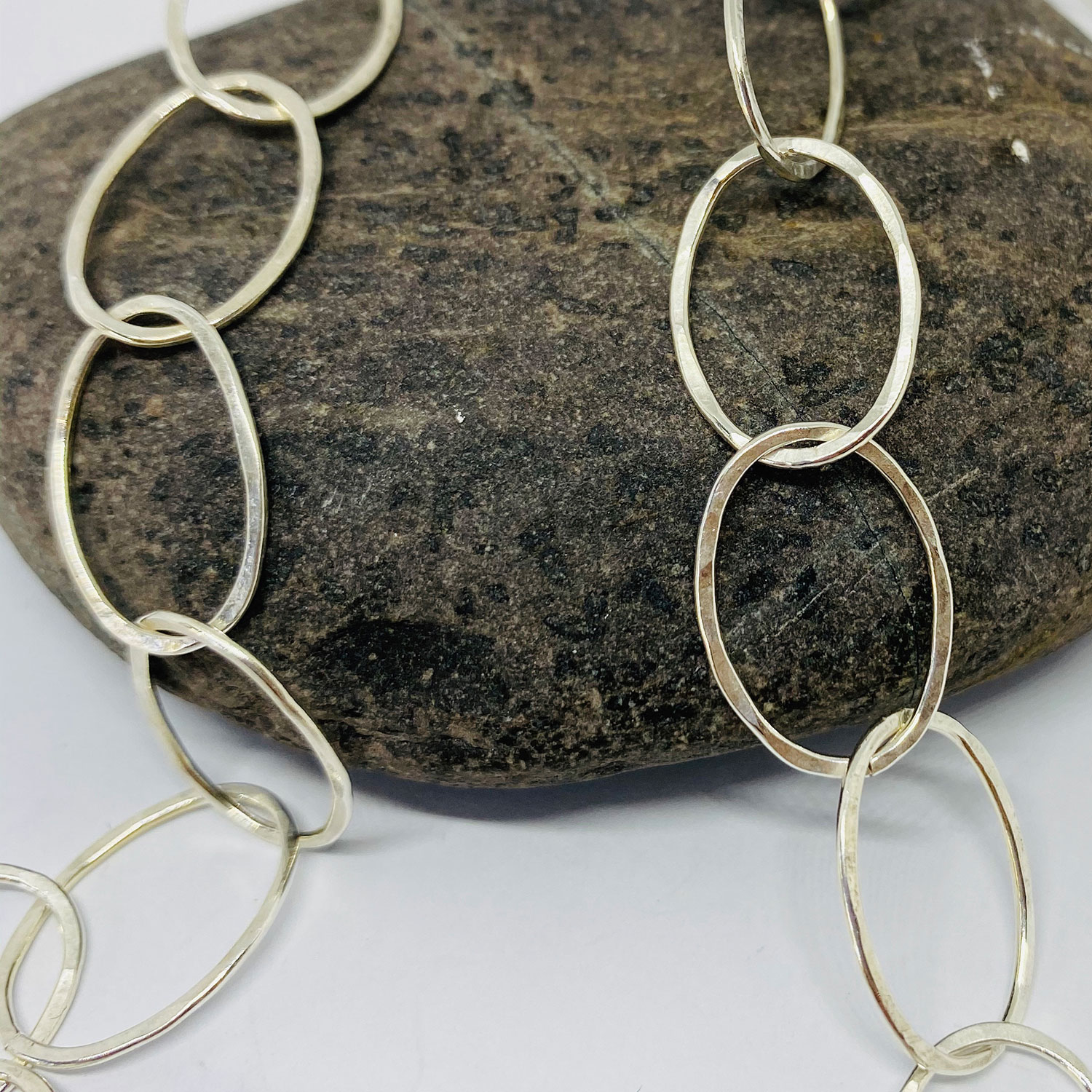 Silver hammered oval link necklace