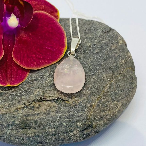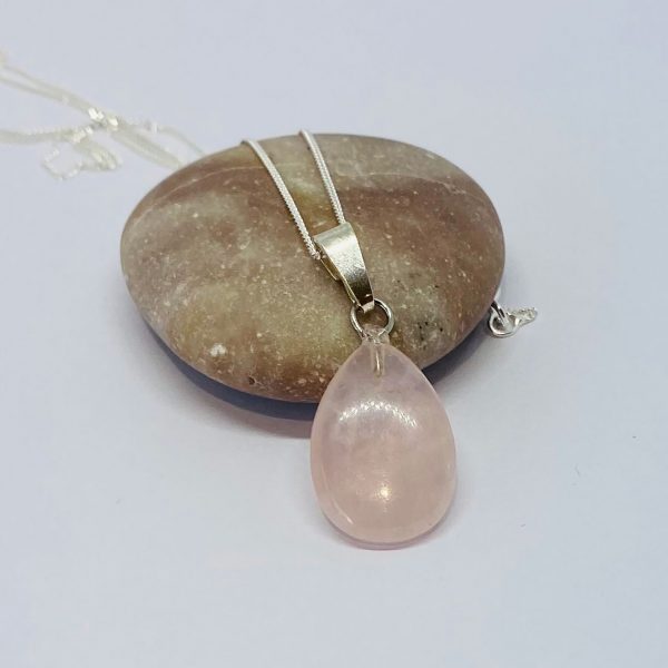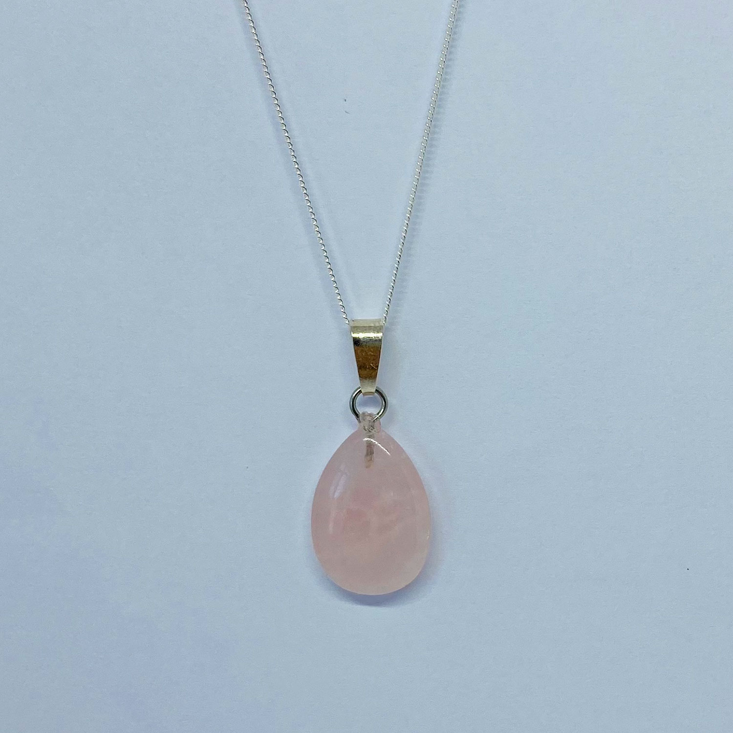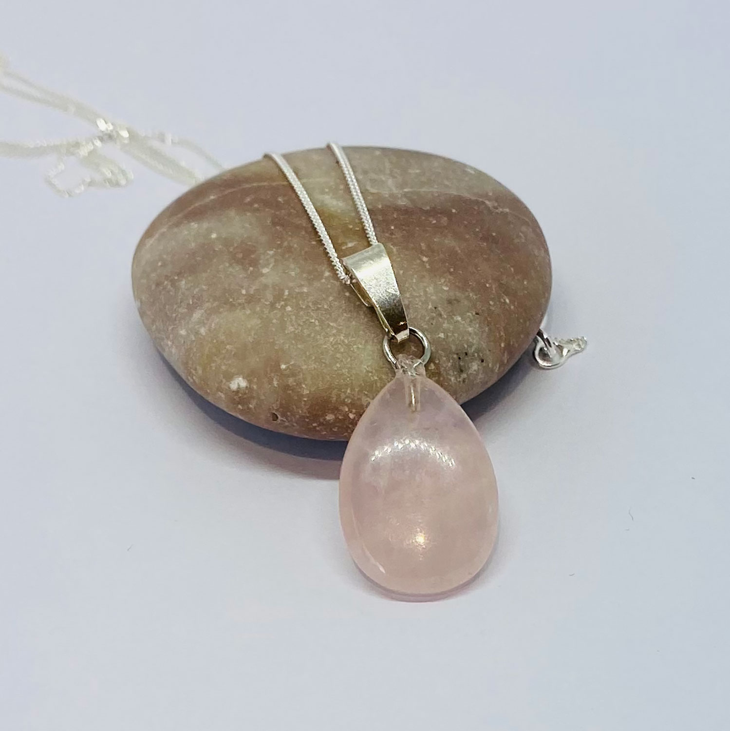 Beautiful 2cm Rose Quartz teardrop pendant on an 18 inch fine silver chain