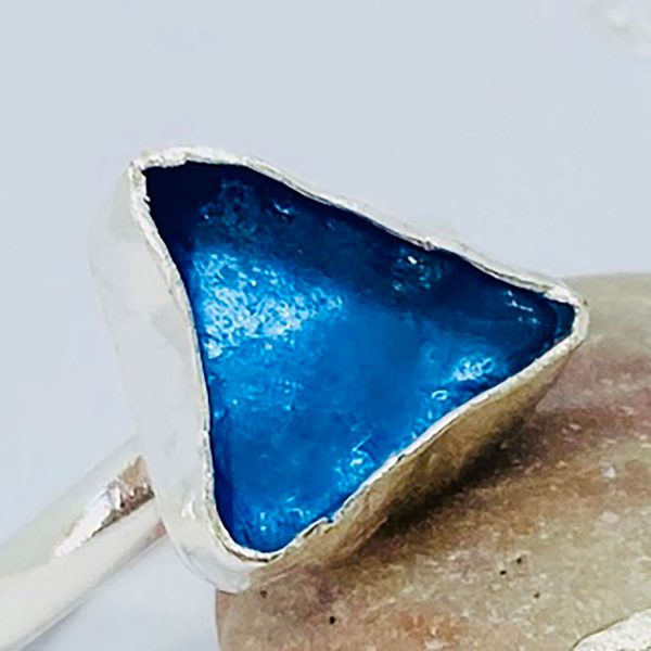 A unique silver cased sea glass ring – Various shapes, sizes & colours of sea glass