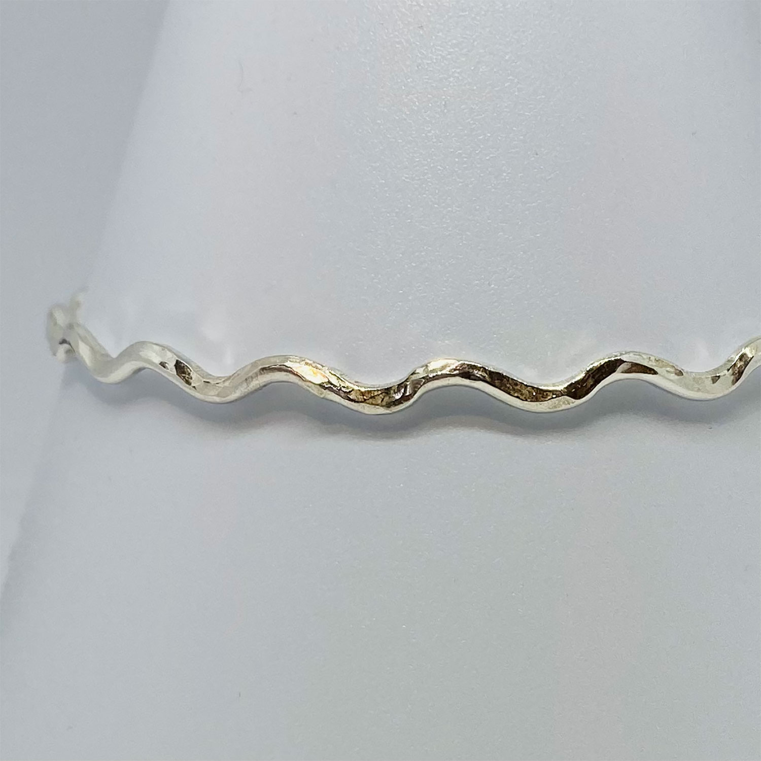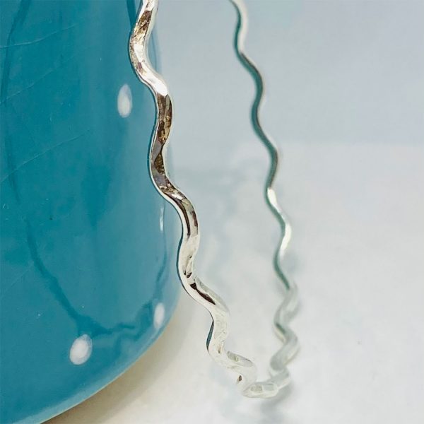 Silver 2mm hammered mini wave bangle