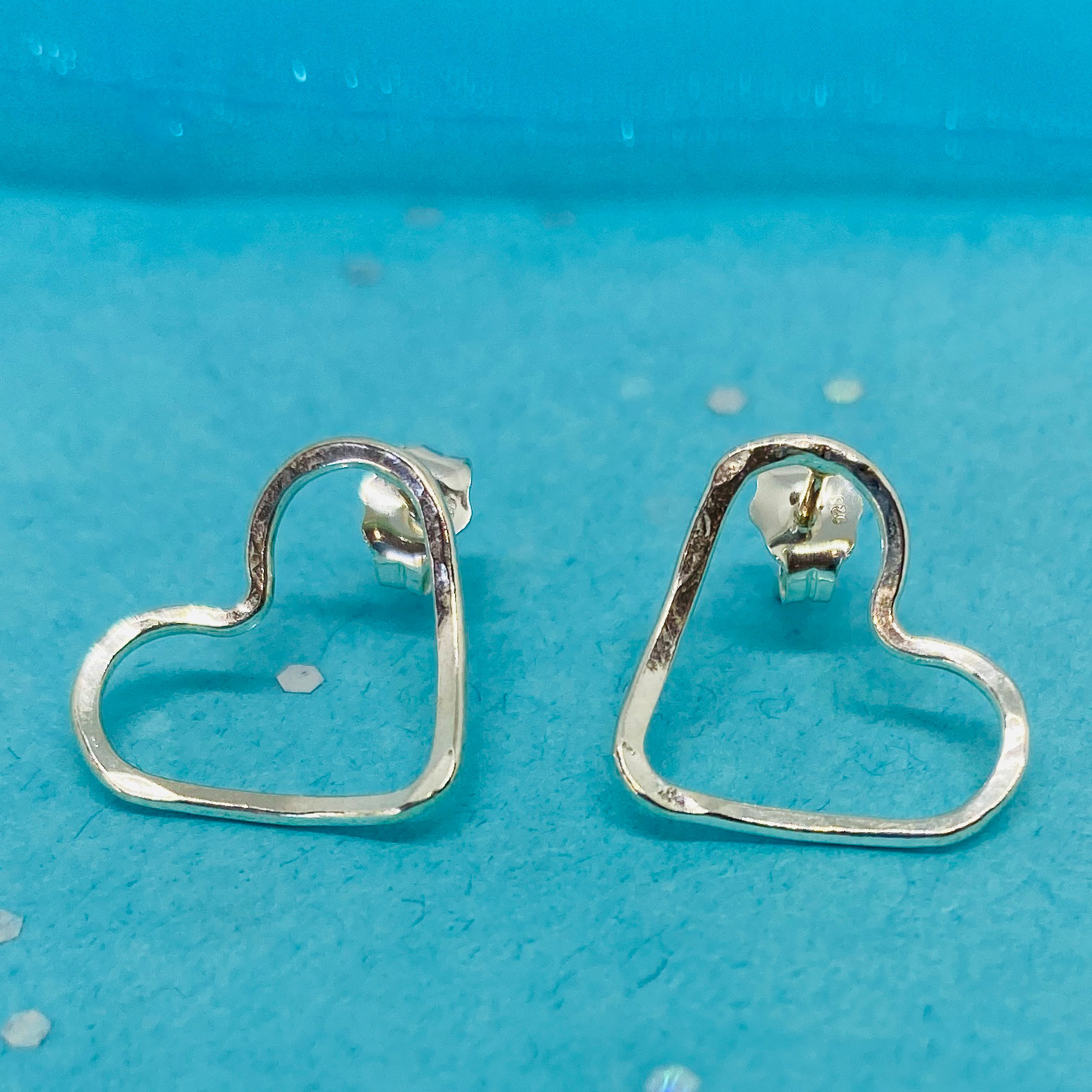 Silver hammered open heart studs