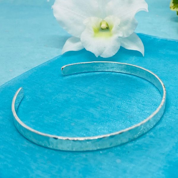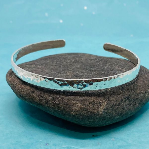 Silver 5mm wide hammered torque bangle