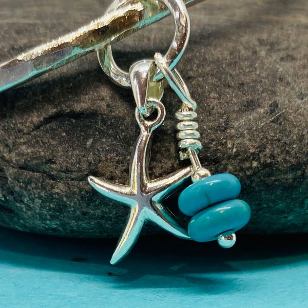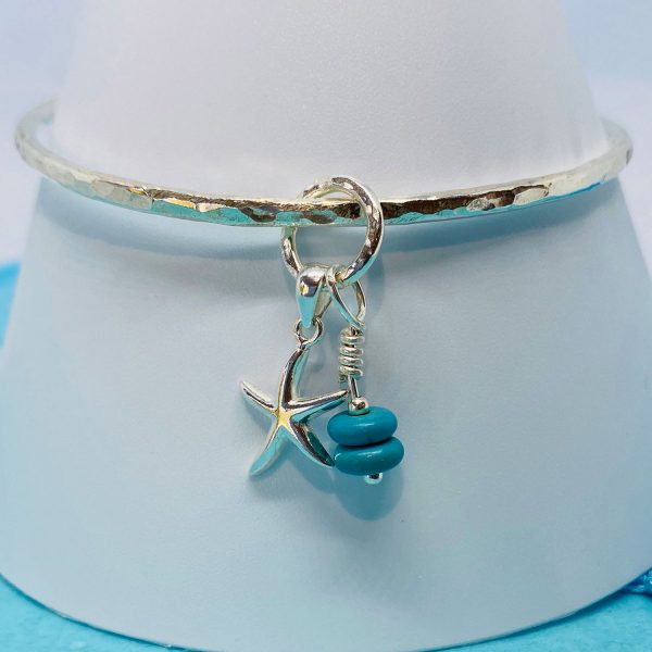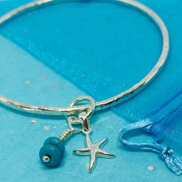 2.5mm silver hammered bangle with a silver Starfish charm and a coloured Bead
