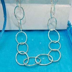 Silver hammered oval link necklace