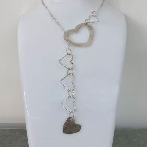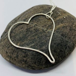 Silver feed through heart necklace